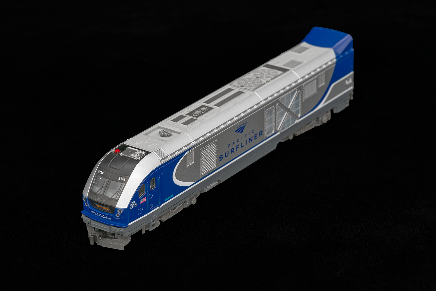 列車名のパシフィック・サーフライナーは、アメリカ西海岸のカリフォルニア州にあるサンルイス・オビスポ〜サンディエゴ間を結ぶ列車で、アムトラックの中では利用者数が3番目に多く、西海岸では最も混雑する列車です。アムトラックの名を冠していますが、カリフォルニア州との共同運行であるため、車両はアムトラックとカリフォルニア州交通局の双方が所有しており、塗装もオリジナルのものとなっています。