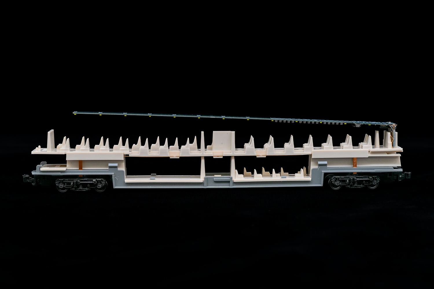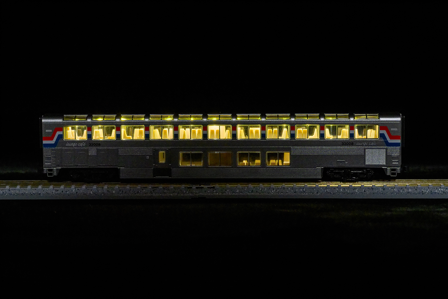 KATOはスーパードームカーで両端から室内灯を入れさせるような凝った構造を採っているのですから、1階席にも室内灯を入れられるようにできなかったのでしょうか。